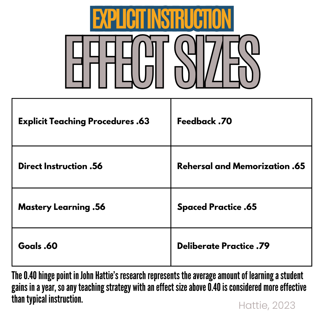 Letâs look at research-backed methods of explicit instruction and their effect sizes to see which strategies make the biggest difference for students.